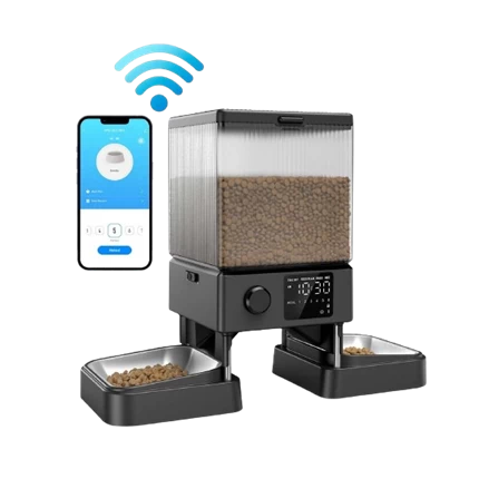 Thiết bị được trang bị kết nối WiFi 2.4G và 5G, cho phép người dùng điều khiển và lập lịch cho bữa ăn thông qua ứng dụng điện thoại. Mỗi khẩu phần được chia chính xác, giúp kiểm soát chế độ ăn của thú cưng, tránh tình trạng ăn quá no hoặc bỏ bữa.