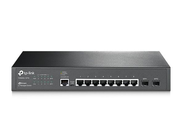 Switch TP-Link T2500G-10TS (TL-SG3210) là thiết bị chuyển mạch Layer 2 thông minh được thiết kế dành cho doanh nghiệp vừa và nhỏ, văn phòng hoặc phòng server. Với 8 cổng Gigabit Ethernet và 2 cổng SFP, sản phẩm cho phép kết nối mạng tốc độ cao, mở rộng linh hoạt và ổn định.